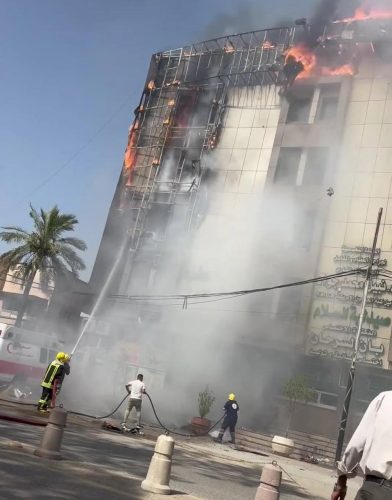 وأشار إلى أن ” فرق الدفاع المدني توجهت إلى محل الحادث في محاولة للسيطرة عليه”.