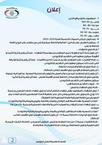ودعت المحافظة المتقدمين إلى قراءة الضوابط وشروط التقديم والاختصاصات المطلوبة بدقة وتهيئة مستمسكاتهم الثبوتية”. انتهى