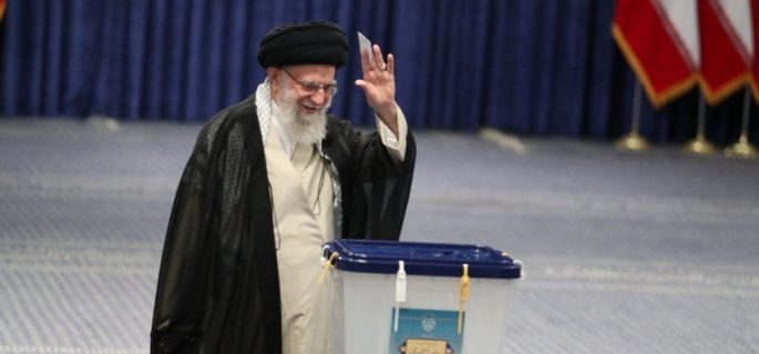 ادلى قائد الثورة الاسلامية اية الله السيد علي خامنئي، صباح اليوم الجمعة، بصوته في المركز الانتخابي بحسينية الامام الخميني وفي الصندوق رقم 110 ، في الدقائق الأولى من بدء التصويت في انتخابات الرئاسة الايرانية في دورتها الرابعة عشرة .