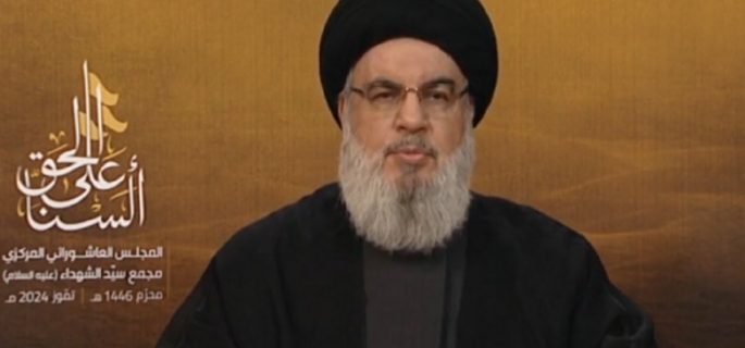 أكَّد الأمين العام لحزب الله أن “المقاومة في لبنان ماضية في ما بدأته في 8 تشرين الأول في طوفان الأقصى حتى تصل إلى الهدف الذي تتطلع إليه في جميع جبهات الإسناد ولا يمكن أن تتراجع”.