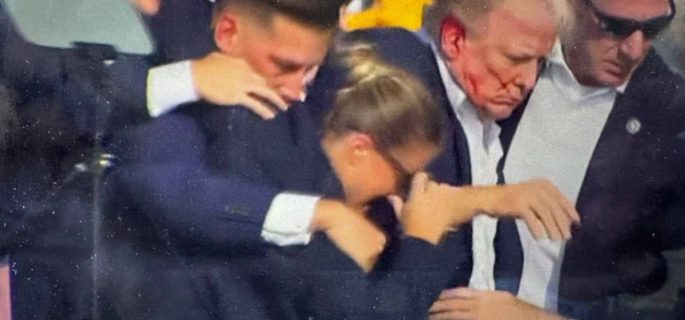 وفجأة وبعد مرور ست دقائق فقط تم سماع وابل من «الفرقعة» بدا كأنه طلقات نارية. أمسك ترامب على الفور بأذنه اليمنى ونظر إلى الدم على يديه ثم سقط سريعا على الأرض خلف المنصة. صرخ الحشد وانحنى الواقفون خلفه من هول المفاجأة.