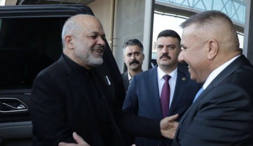 ولدى وصوله مطار بغداد الدولي ، كان في استقباله وزير الداخلية العراقي عبد الأمير الشمري.