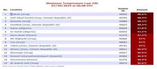 6 مدن عراقية في التصنيف العالمي كأعلى درجات حرارة مسجلة حول العالم