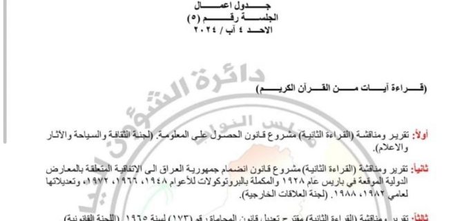 اعمال جلستي البرلمان ليومي السبت والاحد