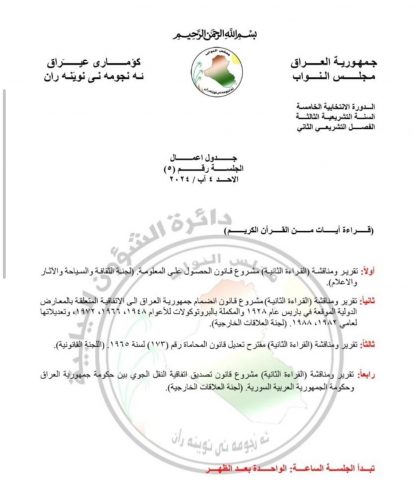 اعمال جلستي البرلمان ليومي السبت والاحد