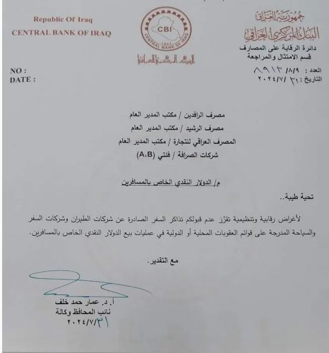 إعمام من المركزي للمصارف وشركات الصرافة: ارفضوا تذاكر السفر من شركات الطيران المعاقبة دولياً