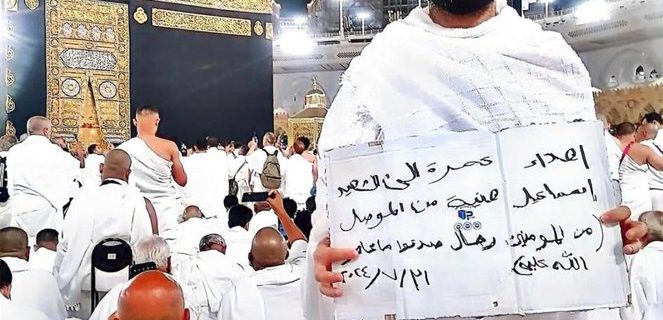 ونشر الباحث العراقي حسين السبعاوي، صورة لابن شقيقه، الأستاذ الجامعي سلمان السبعاوي، وهو أمام الكعبة المشرفة، ويحمل ورقة كتب عليها “إهداء عمرة إلى الشهيد إسماعيل هنية من الموصل”.