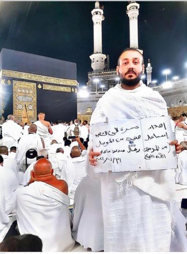 ونشر الباحث العراقي حسين السبعاوي، صورة لابن شقيقه، الأستاذ الجامعي سلمان السبعاوي، وهو أمام الكعبة المشرفة، ويحمل ورقة كتب عليها “إهداء عمرة إلى الشهيد إسماعيل هنية من الموصل”.