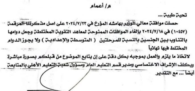 بالوثيقة : التربية تقرر إلغاء الموافقات الممنوحة إلى معاهد التقوية المختلطة
