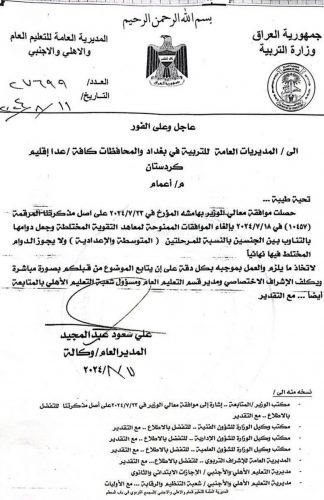 بالوثيقة : التربية تقرر إلغاء الموافقات الممنوحة إلى معاهد التقوية المختلطة