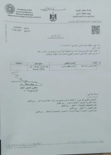 بالوثيقة : الوقف السني يمنع عداي الغريري من الخطابة حتى إشعار آخر