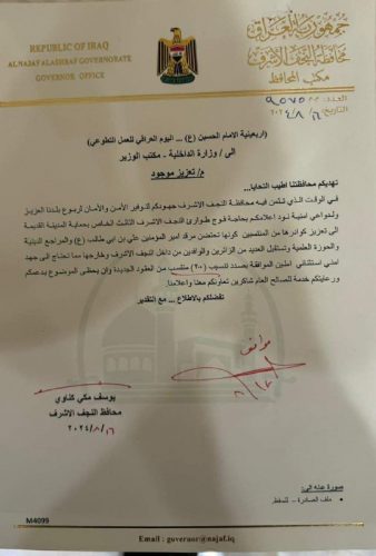 بالوثيقة : الشمري يوافق على تنسيب 200 عقد امني جديد لمحافظة النجف الاشرف