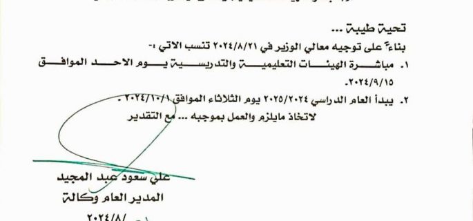 التربية تعلن موعد إنطلاق العام الدراسي ٢٠٢٤_٢٠٢٥