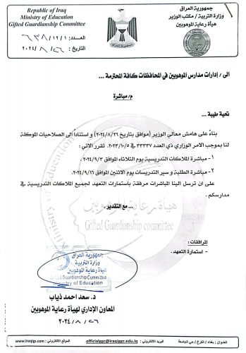 التربية تحدد موعد انطلاق العام الدراسي الجديد في مدارس الموهوبين