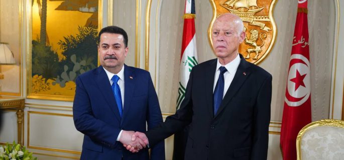 التقى رئيس مجلس الوزراء محمد شياع السوداني في العاصمة تونس، اليوم الأربعاء، رئيس الجمهورية التونسية قيس سعيد.