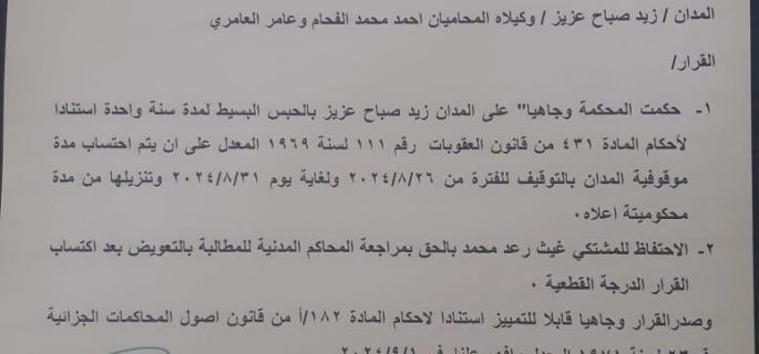 بالوثيقة : الحكم على زيد الطالقاني سنة واحدة لإدانته بالإساءة للرموز الدينية