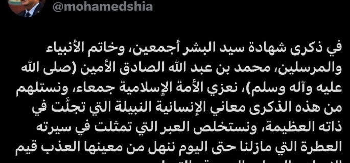السوداني يعزي بذكرى شهادة الرسول (ص)