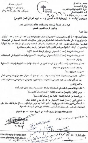 وزارة الصحة تحدد أجور مراجعة المستشفيات والمراكز الصحية