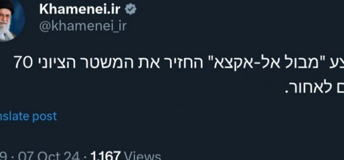 بالتزامن مع ساعة انطلاق عمليّة «طوفان الأقصى» قبل عام، نشر الموقع الإعلامي لقائد الثورة الاسلامية في ايران اية الله السيد علي خامنئي، جملة من خطاب القائد باللغة العبريّة على منصّة «إكس»: