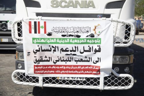 العتبة العباسية المقدسة تطلق القافلة الثالثة من مساعدات النازحين اللبنانيين