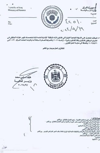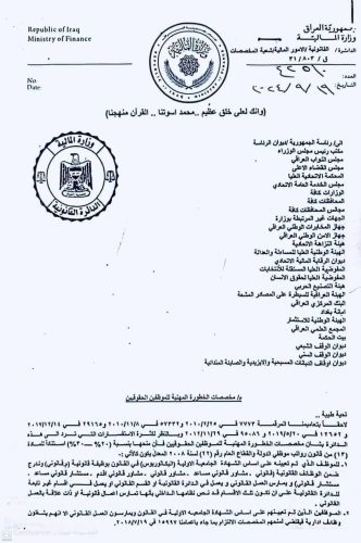 وزارة المالية تصدر إعماما بشأن احتساب مخصصات الخطورة المهنية للموظفين الحقوقيين