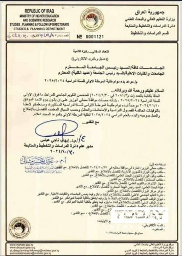 بالوثيقة : التعليم تحدد موعد بدء العام الدراسي لطلبة المرحلة الأولى في الجامعات