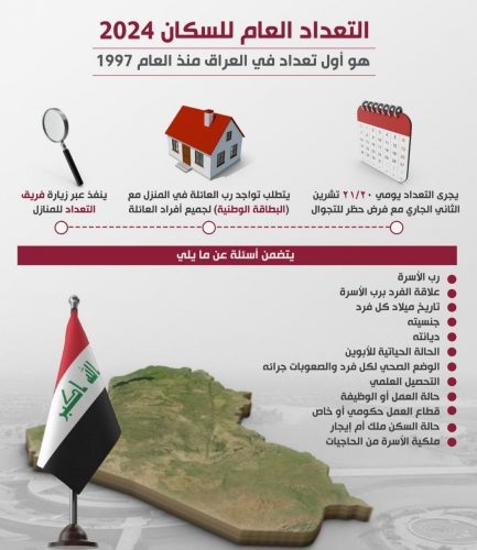 كشفت وزارة التخطيط عن الاسئلة التي ستوجه للاسرة اثناء التعداد العام للسكان ، يومي الاربعاء والخميس المقبلين .