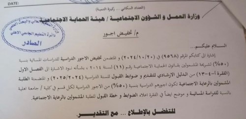 شمول أبناء مستفيدي الحماية الاجتماعية بتخفيض 50٪ في الدراسات الأهلية المسائية