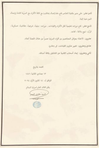 السيد الصدر يصدر توجيهات مشددة لسرايا السلام تتضمن عقوبات وحوافز