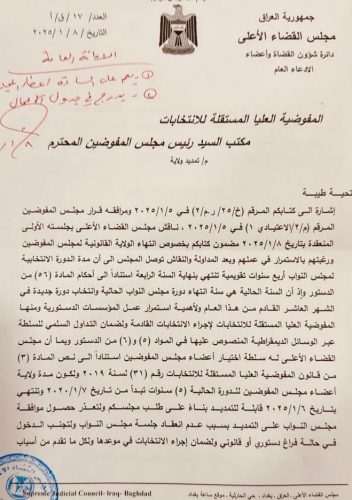 بالوثيقة : مجلس القضاء الأعلى يمدد عمل مفوضية الانتخابات لفترة سنتين إضافيتين