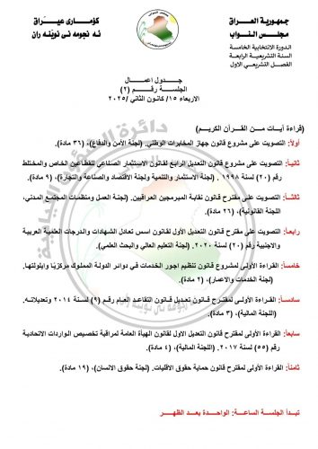 جدول اعمال البرلمان ليوم غد الأربعاء