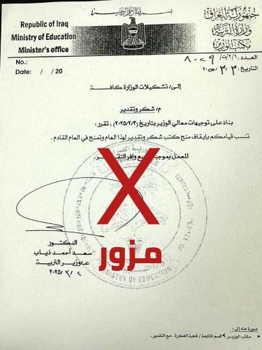 وزارة التربية تنفي إيقافها منح كتب “الشكر والتقدير”