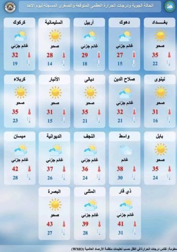 حالة الطقس : اجواء ممطرة مع غبار وانخفاض بالحرارة