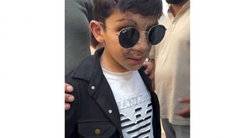واظهر مقطع فيديو الطفل الجريح الشهير “حسن زين الدين” وقد حصل على خاتم هدية من المرجع الأعلى.