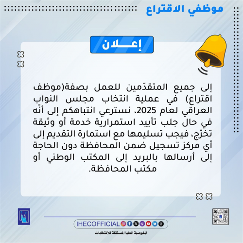 المفوضية توجه رسالة للراغبين بالعمل كموظف اقتراع
