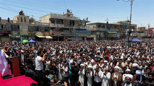 وقال مصدر ، ان “مئات الالاف من المواطنين خرجوا في تظاهرات حاشدة تلبية لدعوة زعيم التيار الوطني الشيعي السيد مقتدى الصدر”.