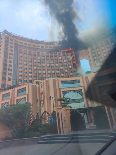 أفاد مصدر ، اليوم الأحد، باندلاع حريق كبير في فندق قلب العالم ببغداد.