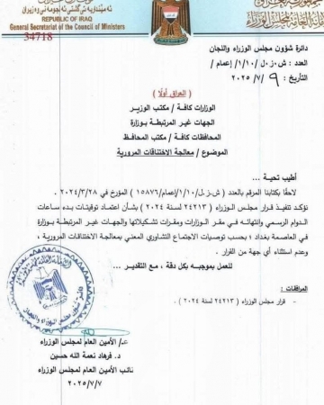 جاء ذلك بحسب وثيقة صادرة من مكتب رئيس مجلس الوزراء وأدناه نصها: