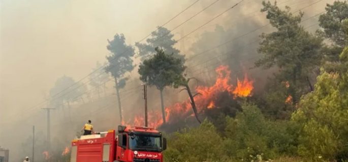 وتزامنا مع موجة حر تضرب المنطقة منذ مطلع تموز/يوليو 2025، اندلعت حرائق ضخمة في مناطق حرجية في اللاذقية في غرب سوريا، قال مكتب تنسيق الشؤون الإنسانية التابع للأمم المتحدة في سوريا إنها أتت على نحو 100 كيلومتر مربع من الغابات والأراضي الزراعية.
