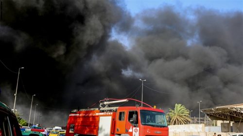 واظهرت مقاطع مصورة ارتفاع أعمدة الدخان ضمن مقتربات كراج النهضة وسط العاصمة بغداد.