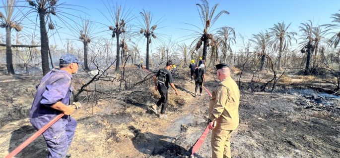إخماد حريق اندلع في أراضي زراعية شمالي البصرة
