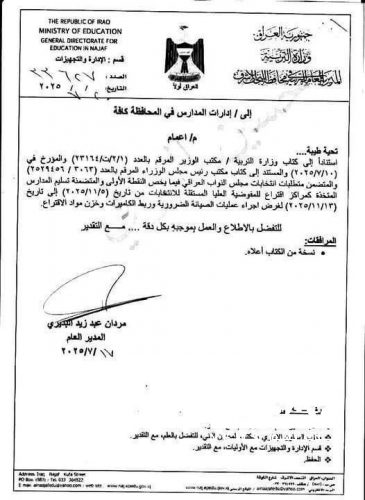 وتضمن القرار “تسليم المدارس المتخذة كمراكز اقتراع إلى المفوضية العليا المستقلة للانتخابات اعتبارا من الخامس من شهر تشرين الثاني الى الـ13 من الشهر نفسه لغرض إجراء عمليات الصيانة الضرورية، وربط الكاميرات وخزن مواد الاقتراع. انتهى