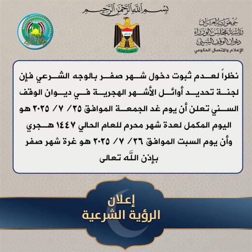 بالوثيقة : الوقف السني يحدد غرة شهر صفر