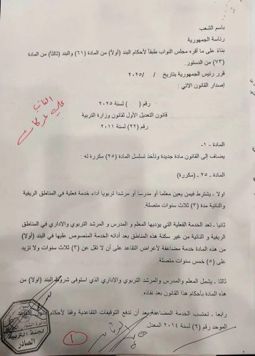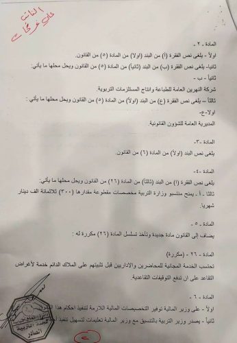 بالوثائق.. مسودة تعديل قانون وزارة التربية المقرر عرضه بجلسة اليوم للتصويت