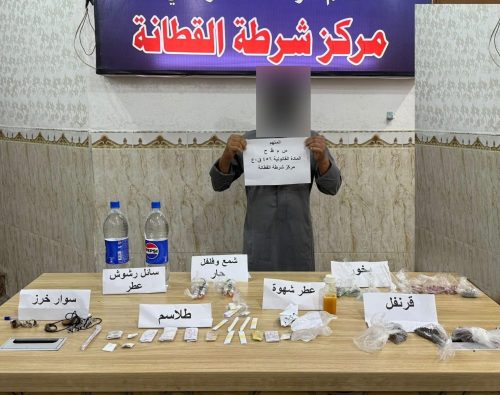 وذكرت القيادة في بيان تلقت *الرأي* الدولية نسخه منه ، أن “المتهم (س.م.ظ.ح) جرى استدراجه وضبط بحوزته مواد تُستخدم في أعمال السحر والشعوذة”، مؤكدة أنه “تم توقيفه وفق المادة (456 ق.ع) ليأخذ جزاءه العادل وفق القانون”.