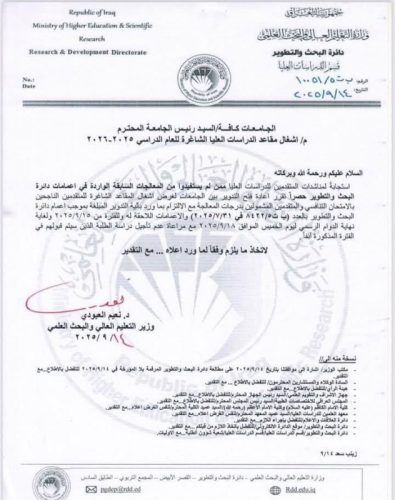 لاشغال شواغر الدراسات العليا..بالوثيقة .. التعليم تقرر اعادة فتح التدوير بين الجامعات