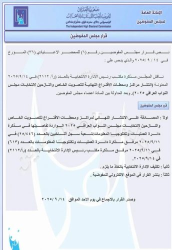 المفوضية تصادق على الانتشار النهائي لمراكز الاقتراع الخاص والنازحين