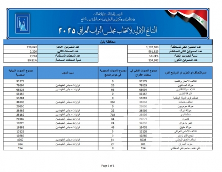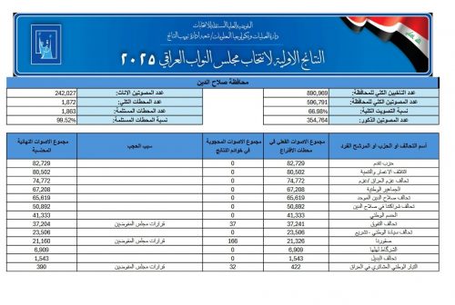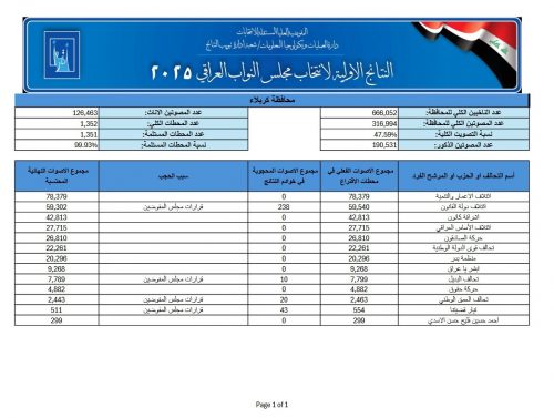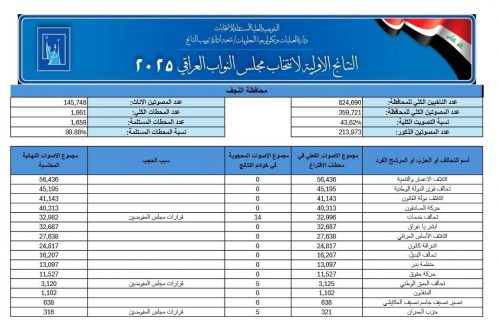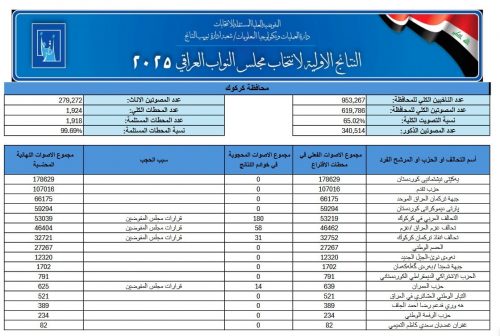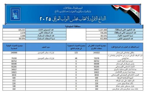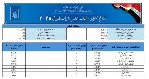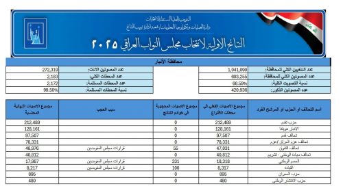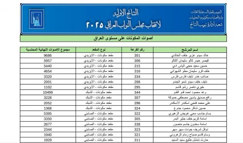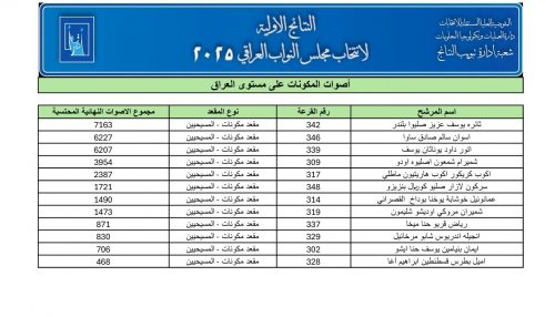 أصوات المكونات في الانتخابات النيابية على مستوى العراق: