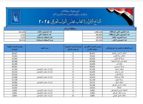 المفوضية تعلن النتائج الأولية للانتخابات البرلمانية
