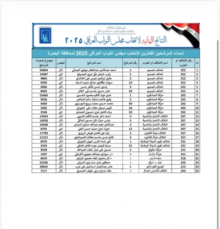 أسماء الفائزين بالانتخابات عن البصرة وبابل